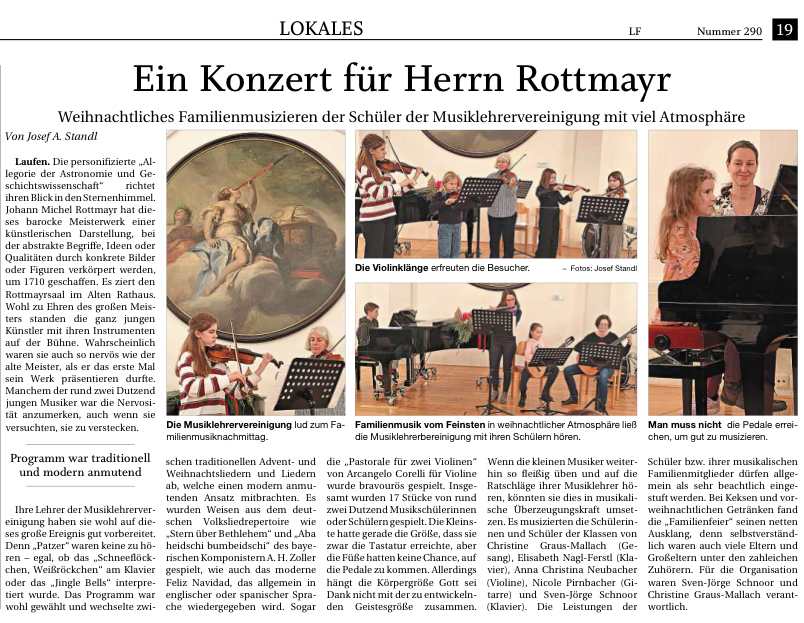 Weihnachtliches Familienmusizieren in Laufen